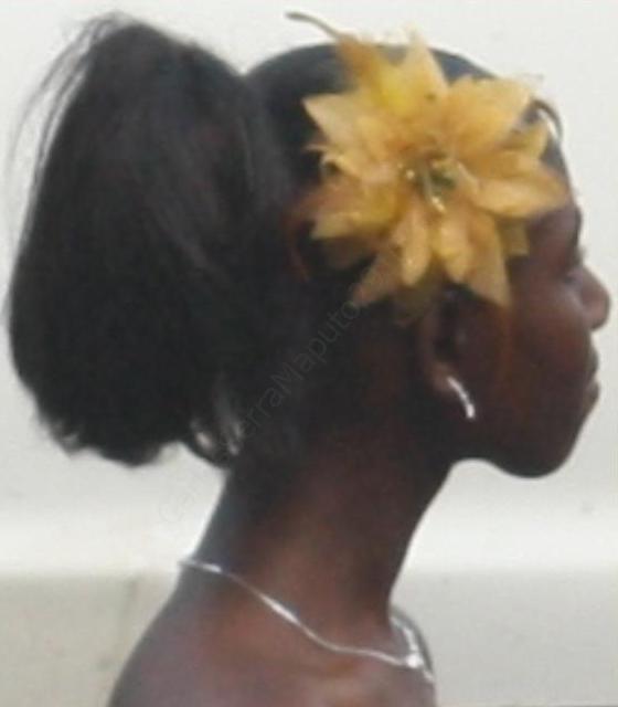 Jovem de flor no cabelo